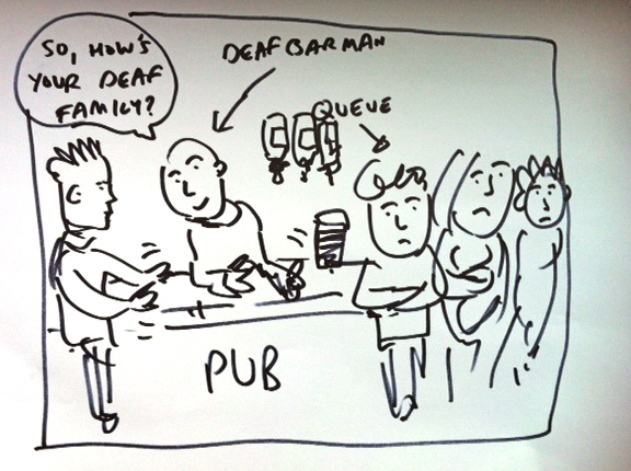 It’s mostly the fact that your deaf friends will come to visit you at work and stay for a ‘quick’ chat (see also: ‘Coastguard’) stopping you from serving anyone.