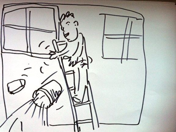 Balancing on the top of a ladder with a bucket in one hand, a squeegee in the other and trying to find a third limb with which to sign to your assistant (or the half-dressed person inside the house who hasn’t noticed you) – it’s just never going to end well, is it?