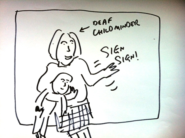 Hearings tend to panic when they see their baby being held under one arm, while the carer signs rapidly with the other.