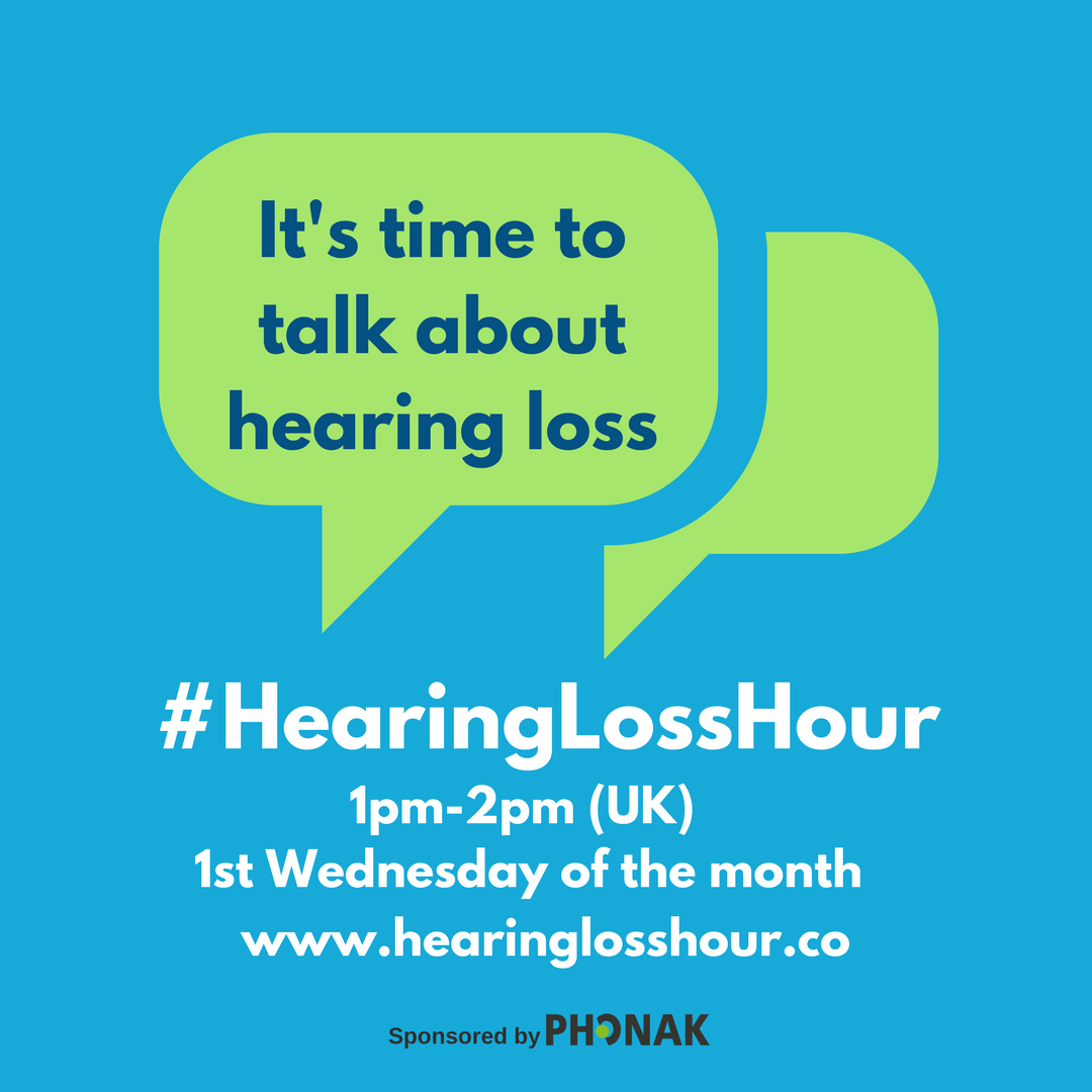 #hearinglosshour takes place on the first Wednesday of every month at 1pm (UK time). (If you live outside the UK, there is a time zone checker on the website: www.hearinglosshour.co.)